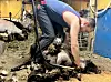 Med den andre handa fører Witt maskina rutinert over bakenden til sauen. For kvart raske drag nærast glir ulla av og gjer det krøllete teppet på fjøsgolvet lengre og større. Det er først når Witt lausnar grepet, og bonde Reidar Kaabbel kjem med riva og dreg til seg ullhaugen, at den nakne søya rykker til og sprett opp på føtene att.