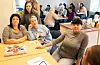 Det er Tetiana Zamnyus som omset frå norsk og engelsk til ukrainsk når Vestavind snakkar med dei, medan dei speler eit slag Kina-sjakk.