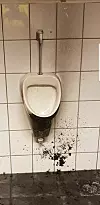 Tydelege merke etter brann på toalettet der brannen starta.