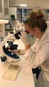 Første året av bacheloren var ho stort sett på skulen, men med munnbind i enkelte situasjonar. Frå nyttår er alt digitalisert og tilrettelagt for heimestudiar. Det er til og med kome digital undervisning i praktiske fag. Ein del av studiet i biomedisin krevjer at ein må vera med på labarbeid.