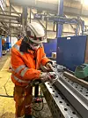 – Her er det mange mogelegheiter for framtida. Hittil har læretida ved Aibel svart til forventingane. Eg har fått prøvd meg på ulike arbeidsoppgåver og er nå i prefabrikasjonsavdelinga. Det inneber mellom anna at ysme delar i stål skal pussast og slipast før dei blir skrudde på plass.